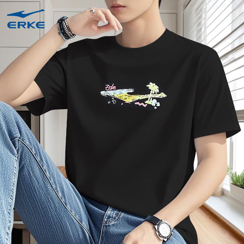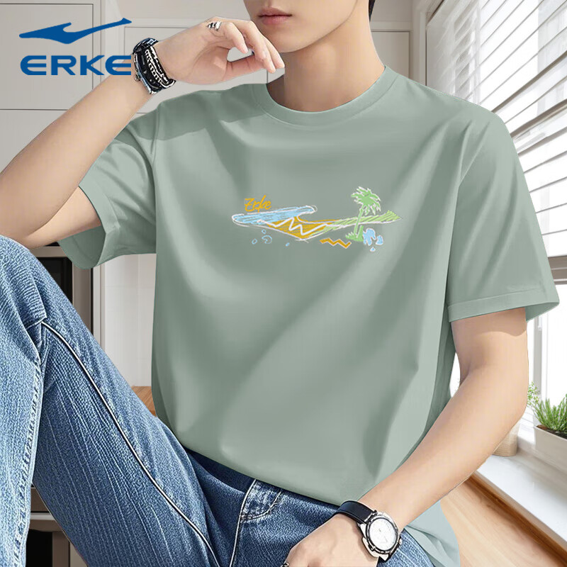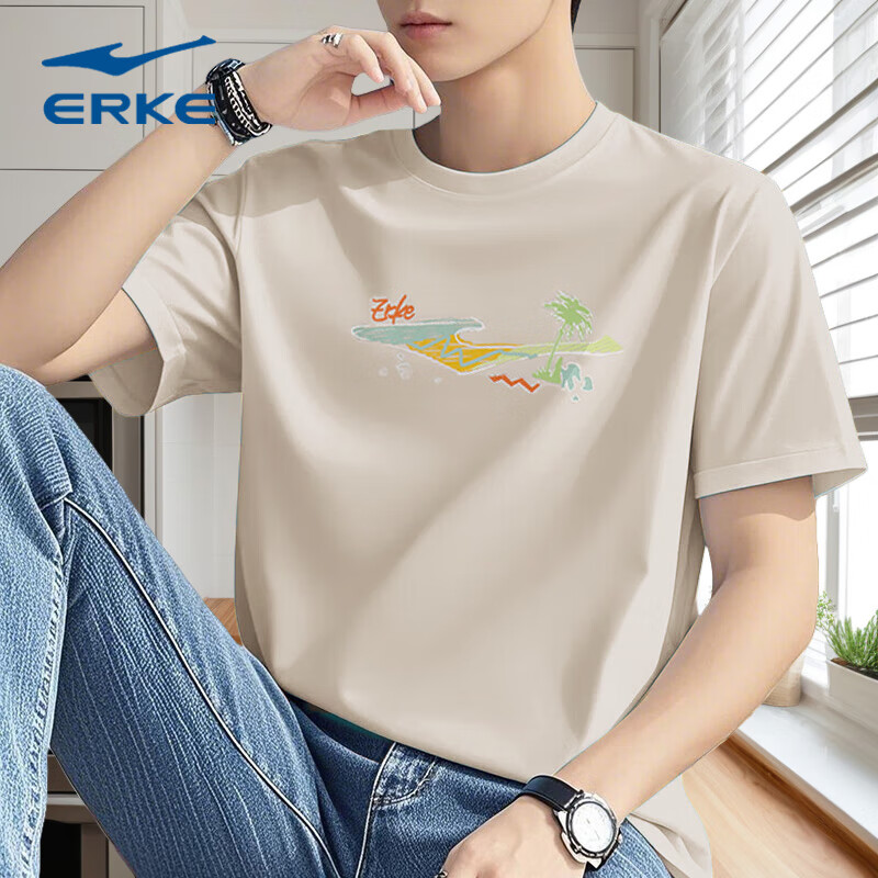 鸿星尔克短袖T恤男棉质2025新款夏季男士冰丝红星官方旗舰店男装