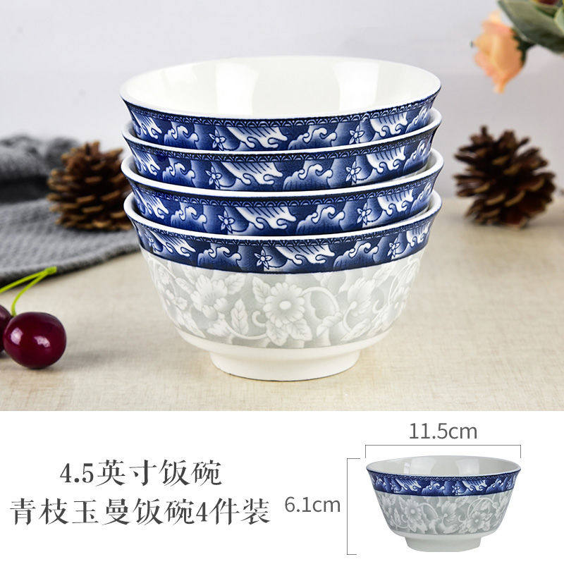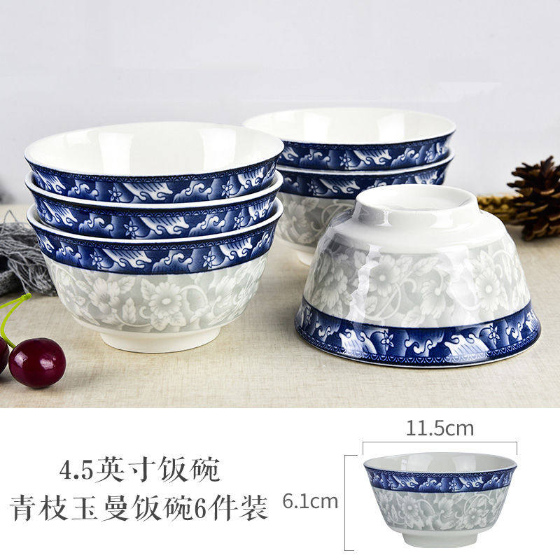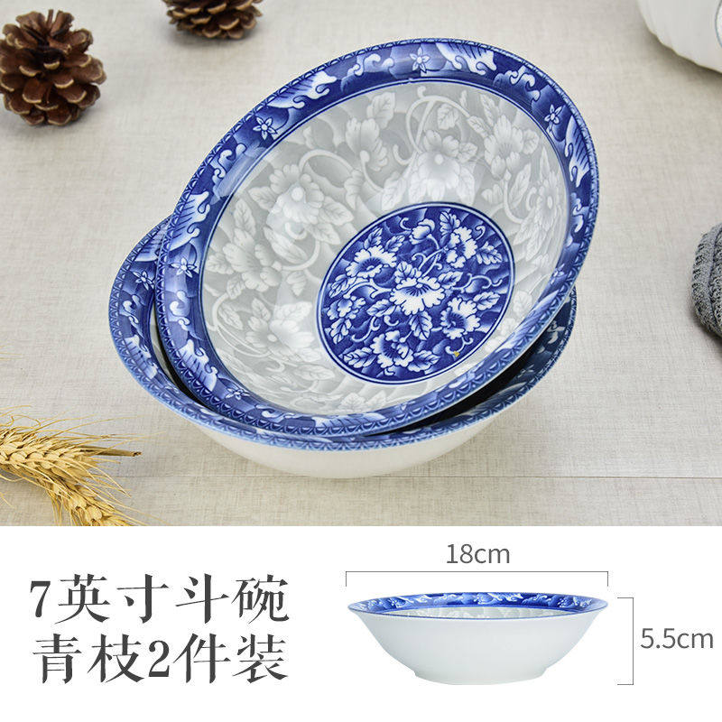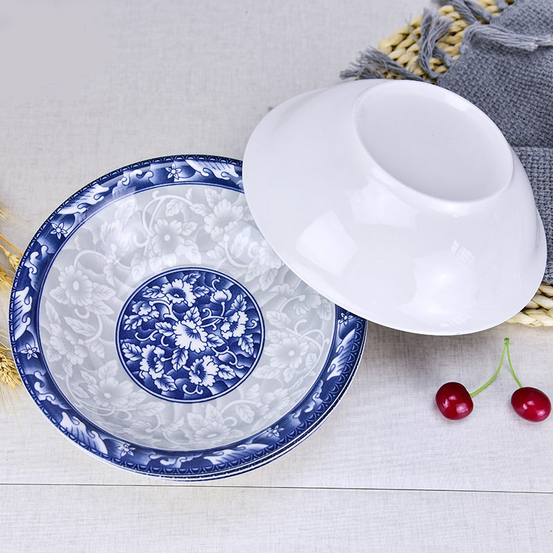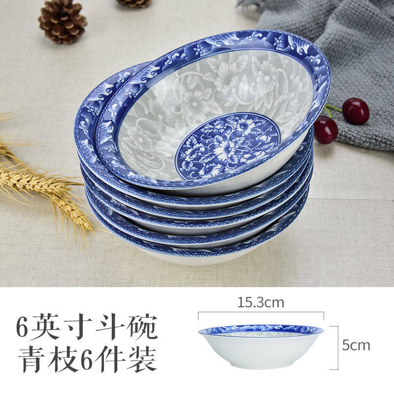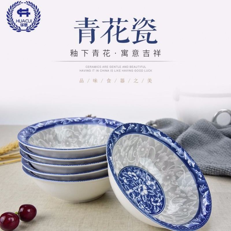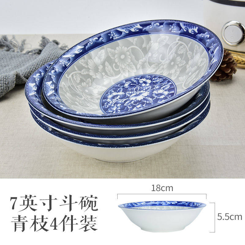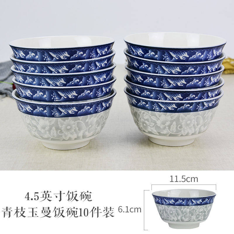 10只青花瓷碗家用商用套装碗大碗饭碗斗碗汤碗斗笠碗吃饭碗泡面碗