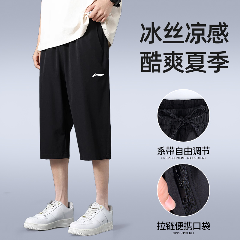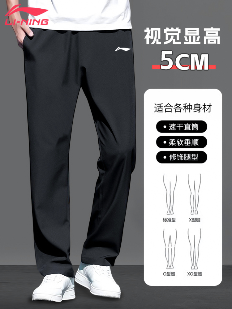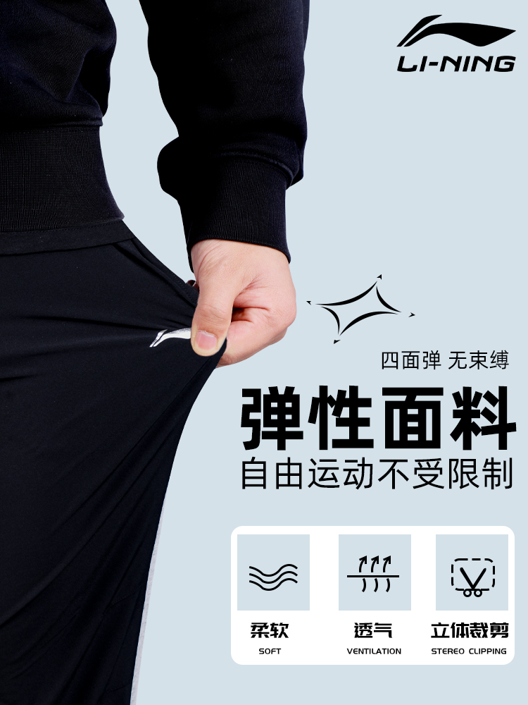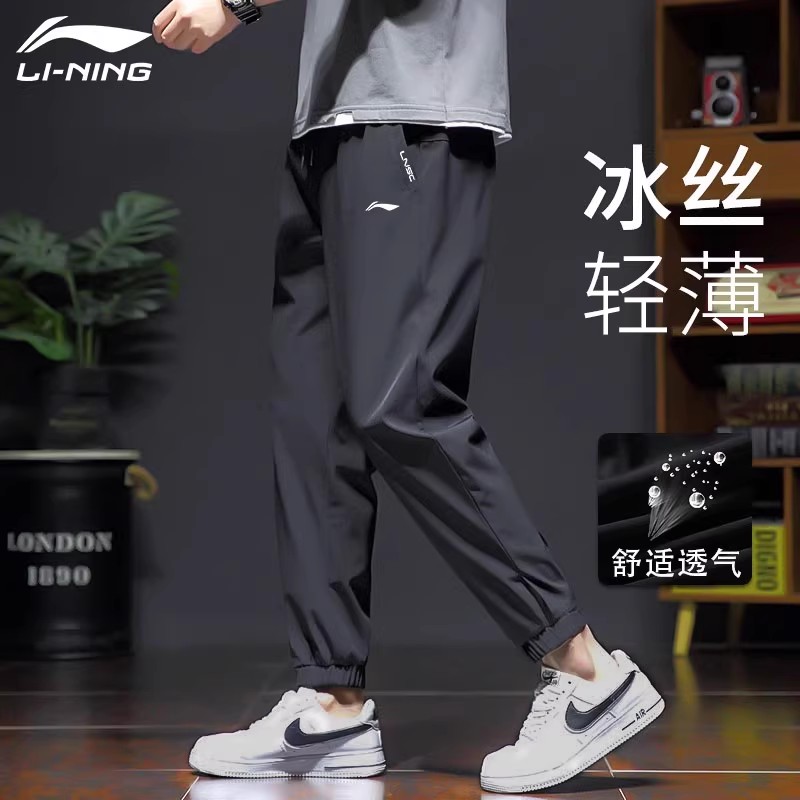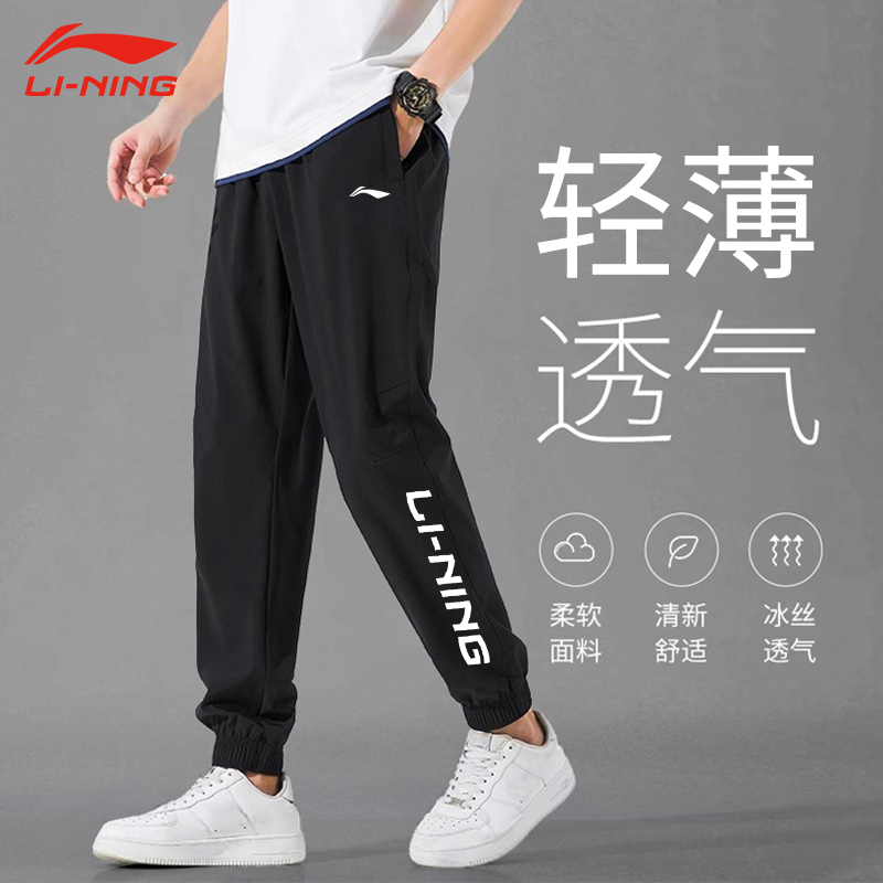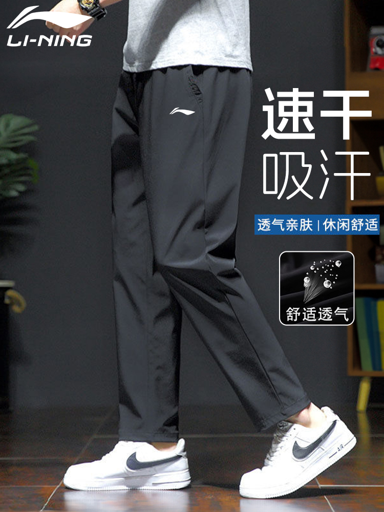 李宁速干裤男款运动裤男士夏季新款透气冰丝直筒宽松休闲长裤子正