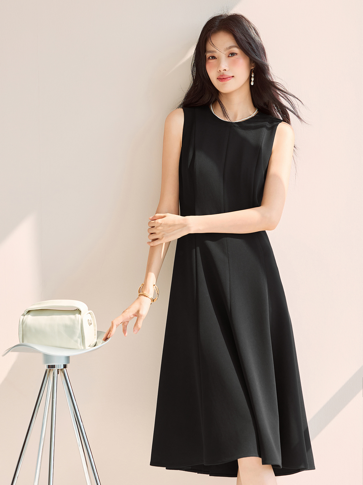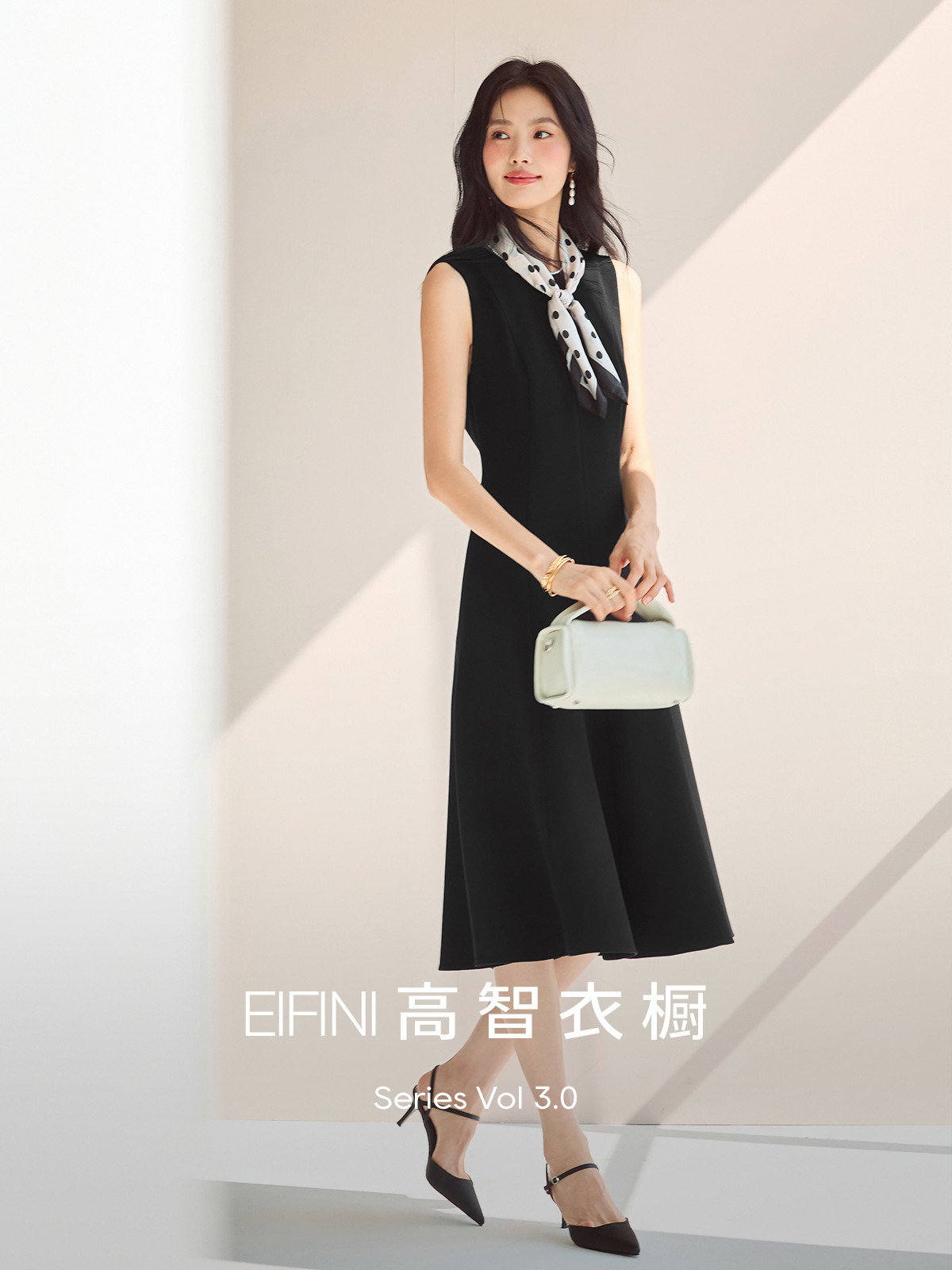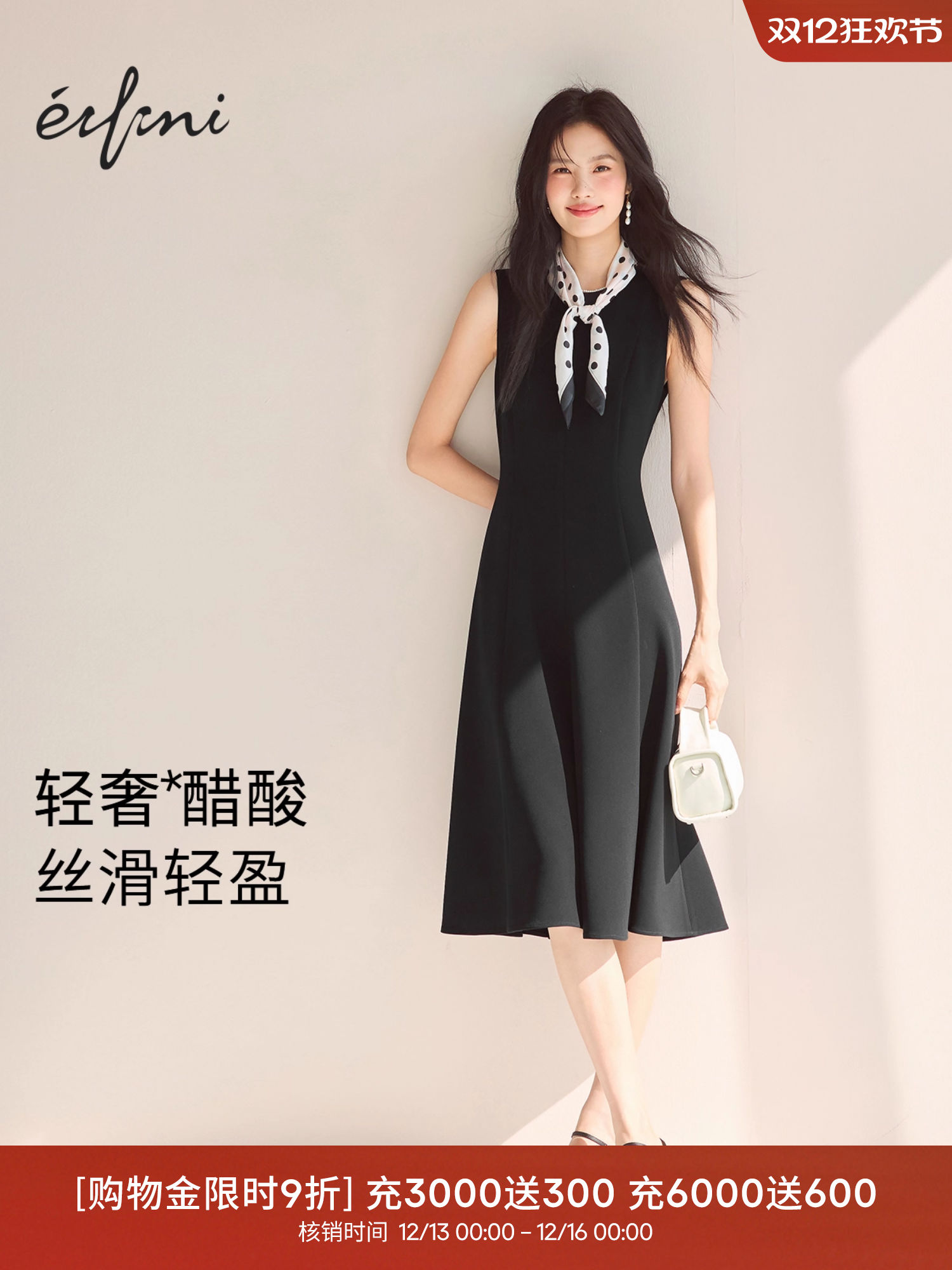 蒋欣代言伊芙丽醋酸鱼尾收腰轻奢职场法式小黑裙女新款连衣裙