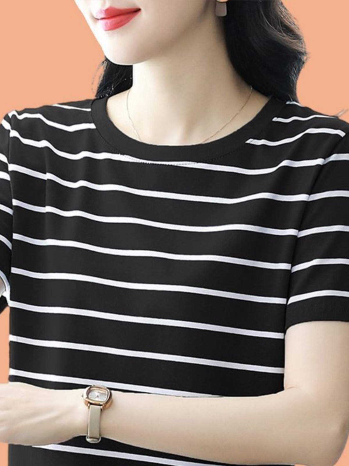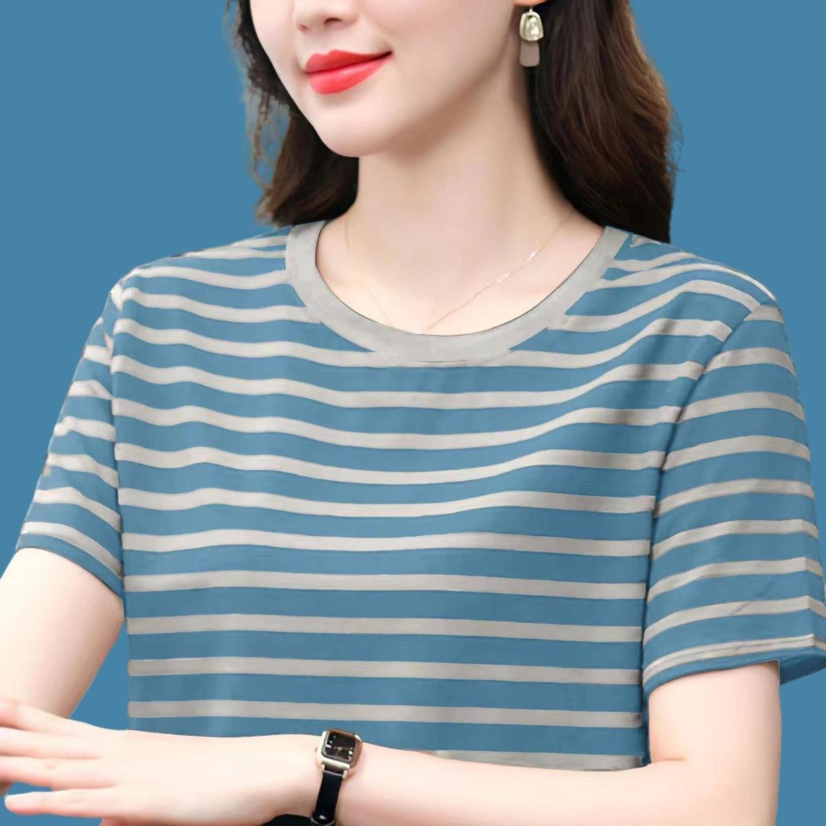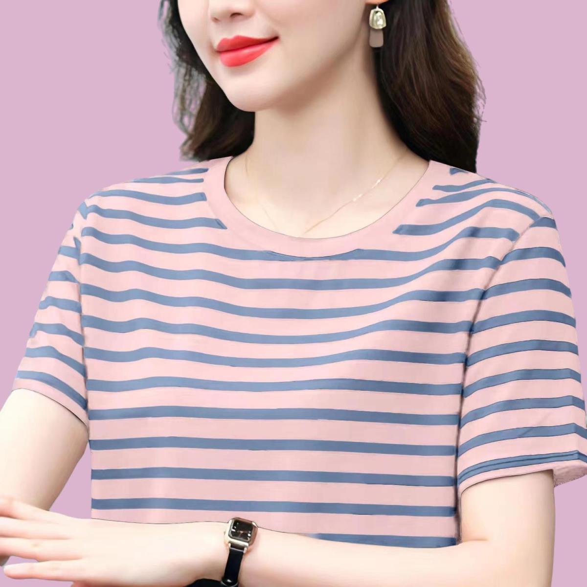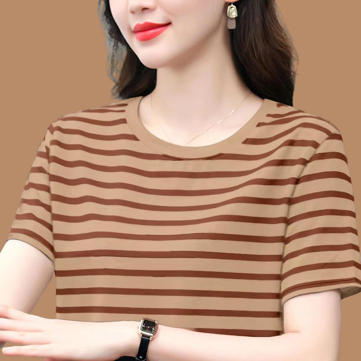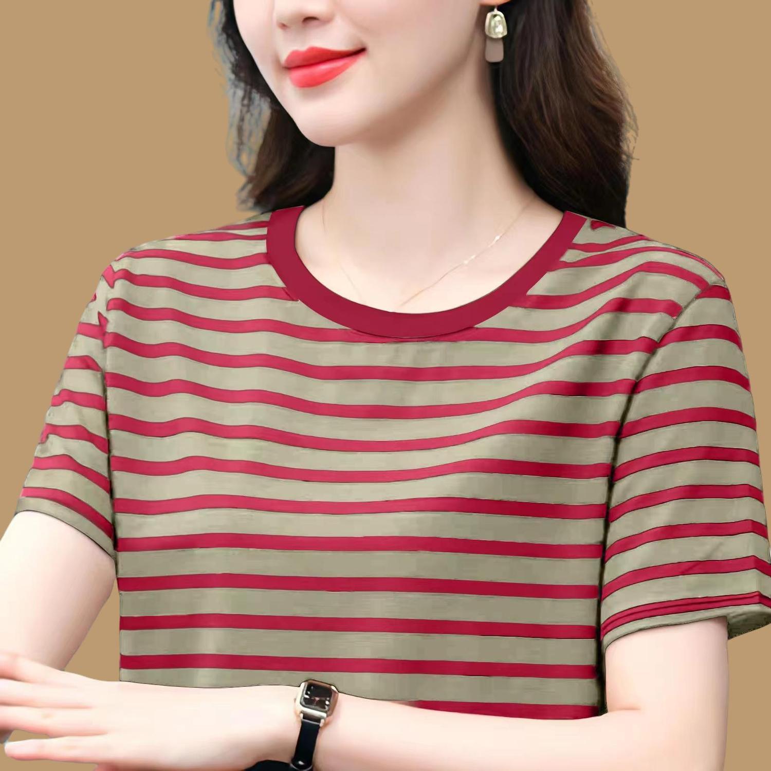 夏季新款大码宽松短袖t恤女士遮肚子黑白条纹体恤小衫纯棉上衣服