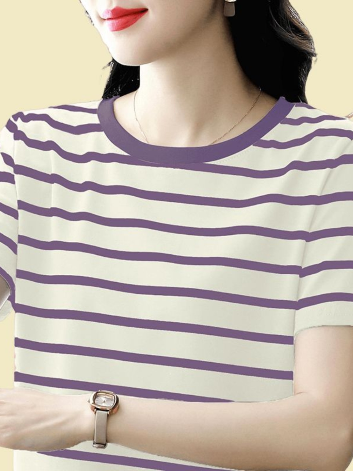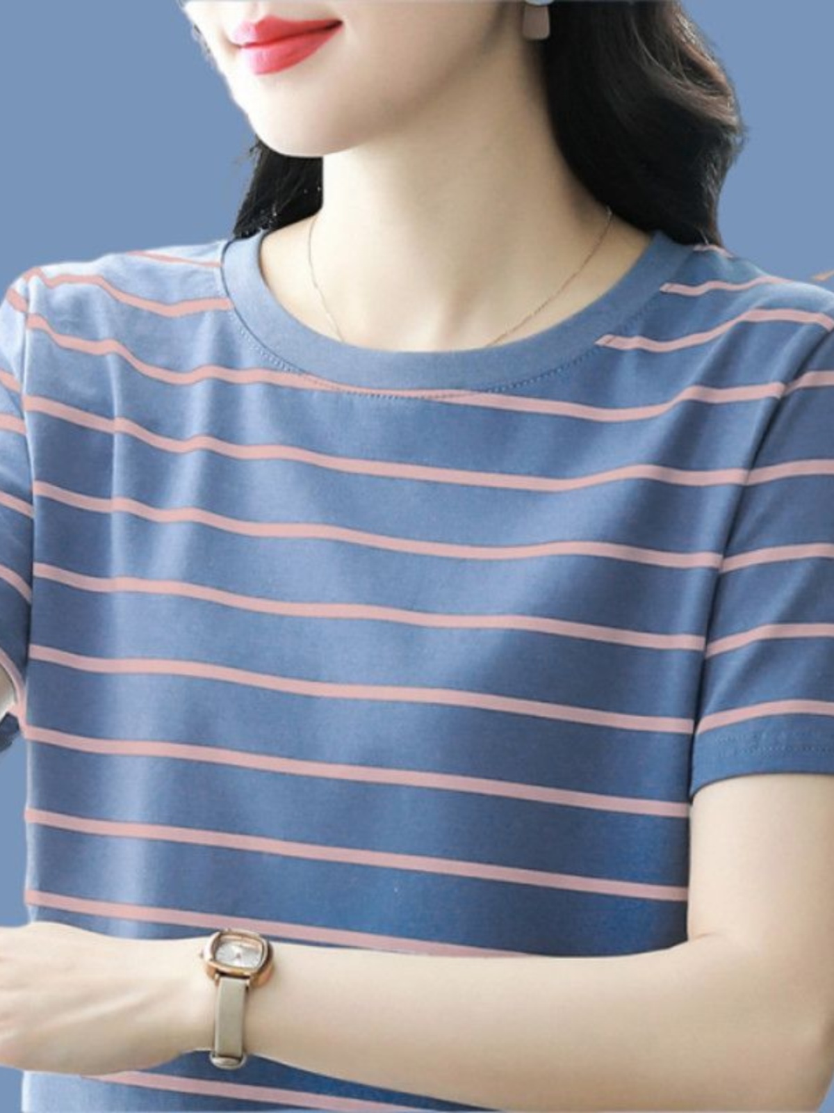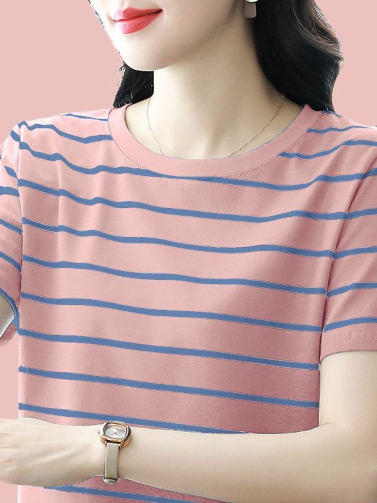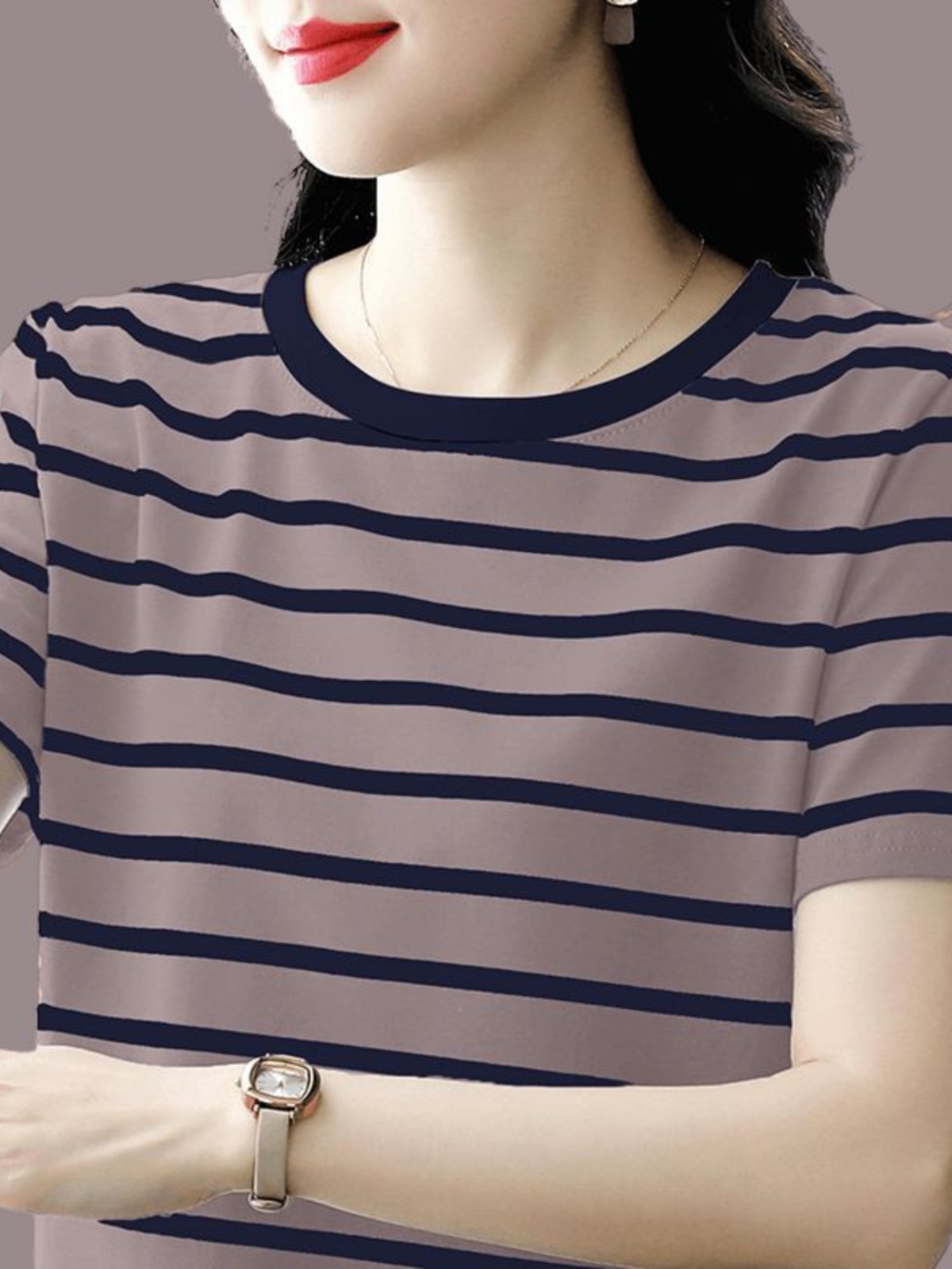 夏季新款大码宽松短袖t恤女士遮肚子黑白条纹体恤小衫纯棉上衣服