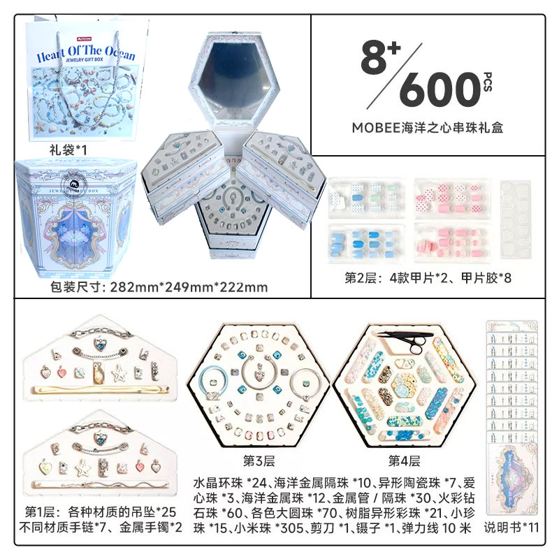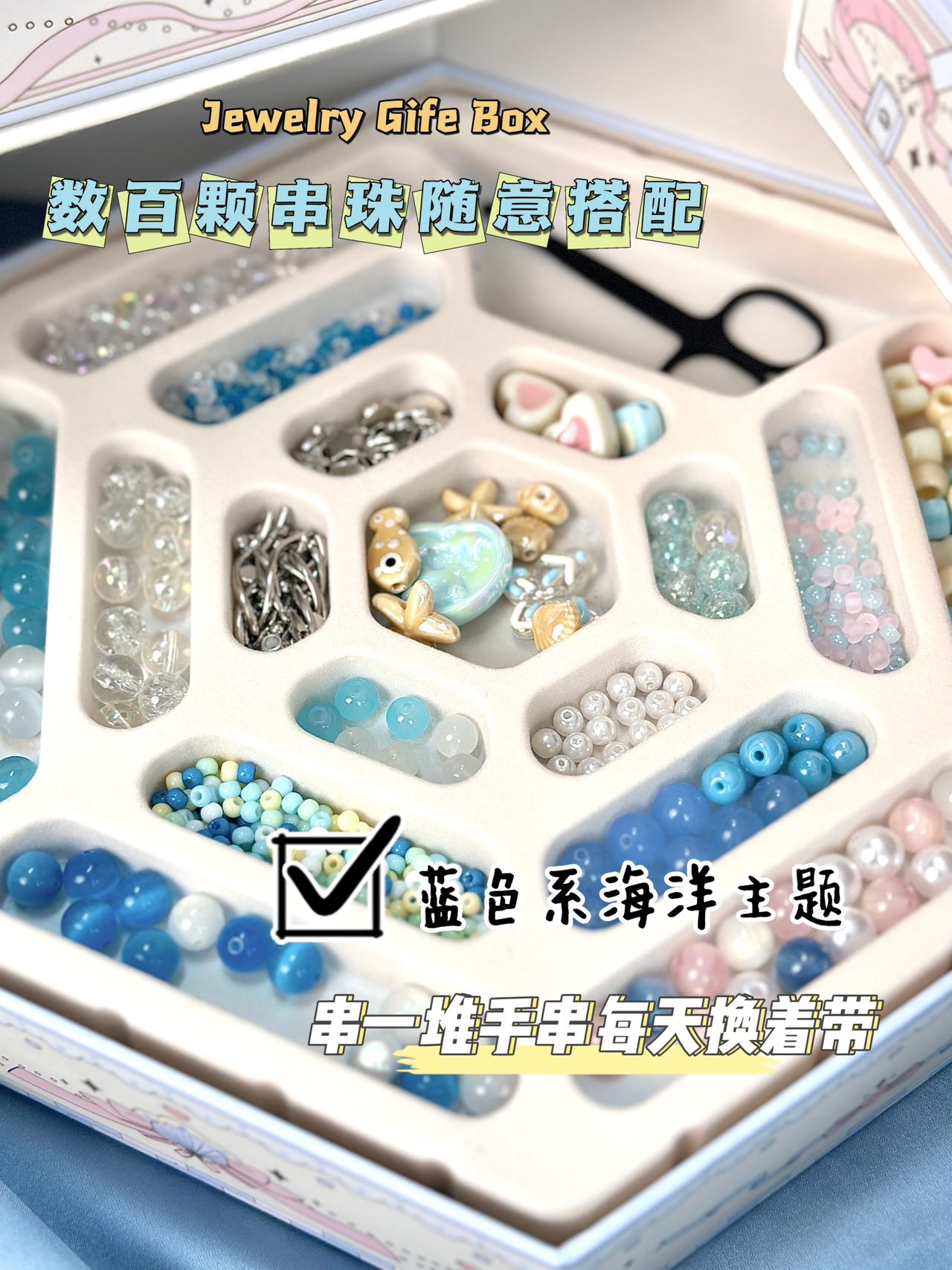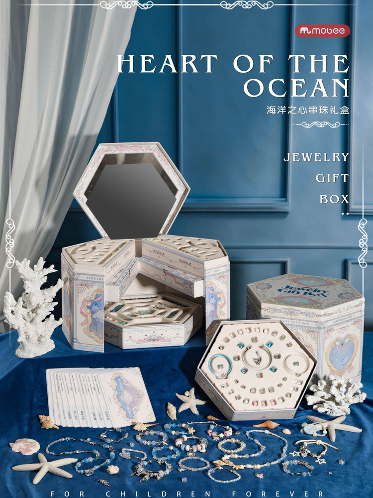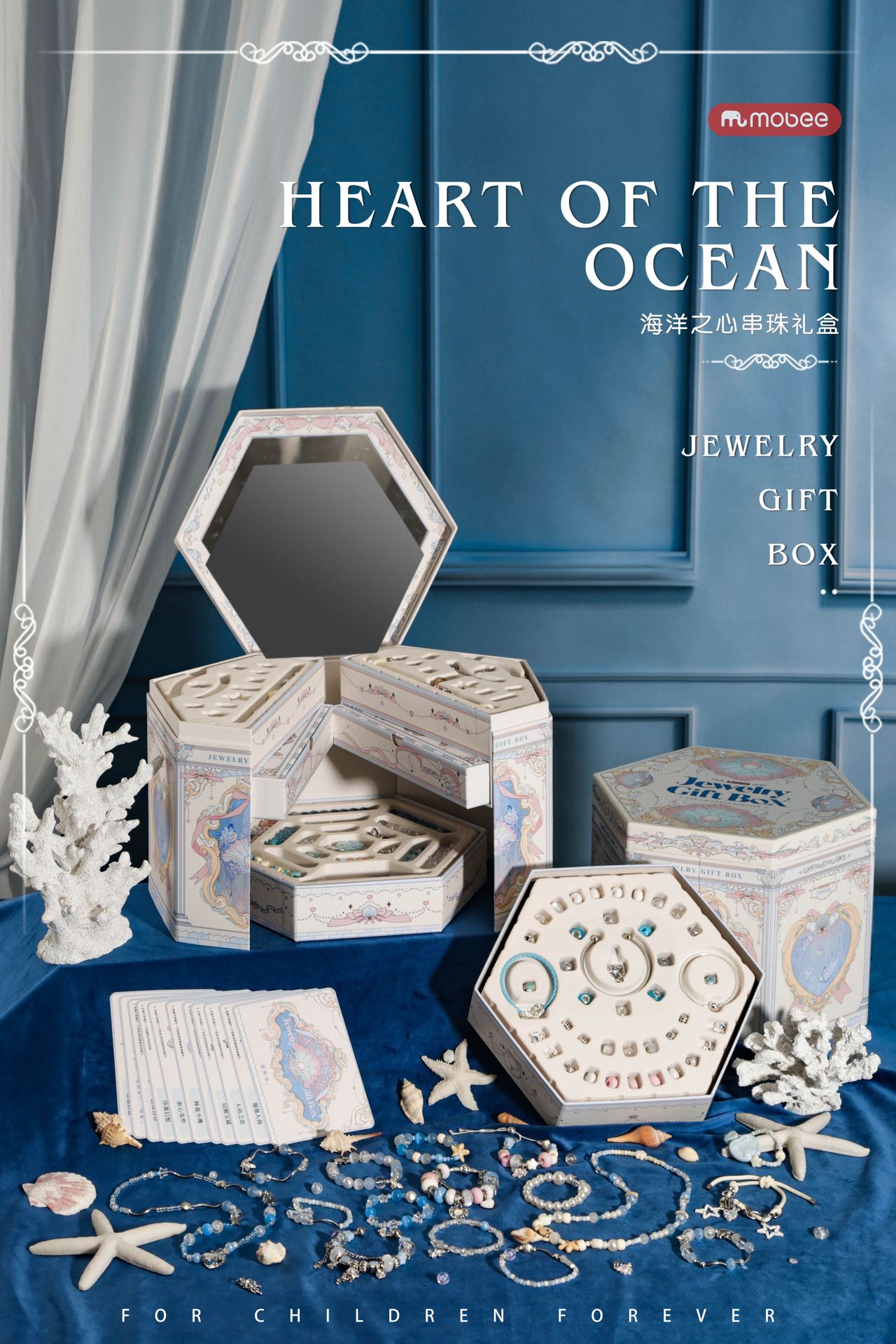 mobee海洋之心串珠礼盒套装女孩手工diy项链首饰女童生日礼物玩具