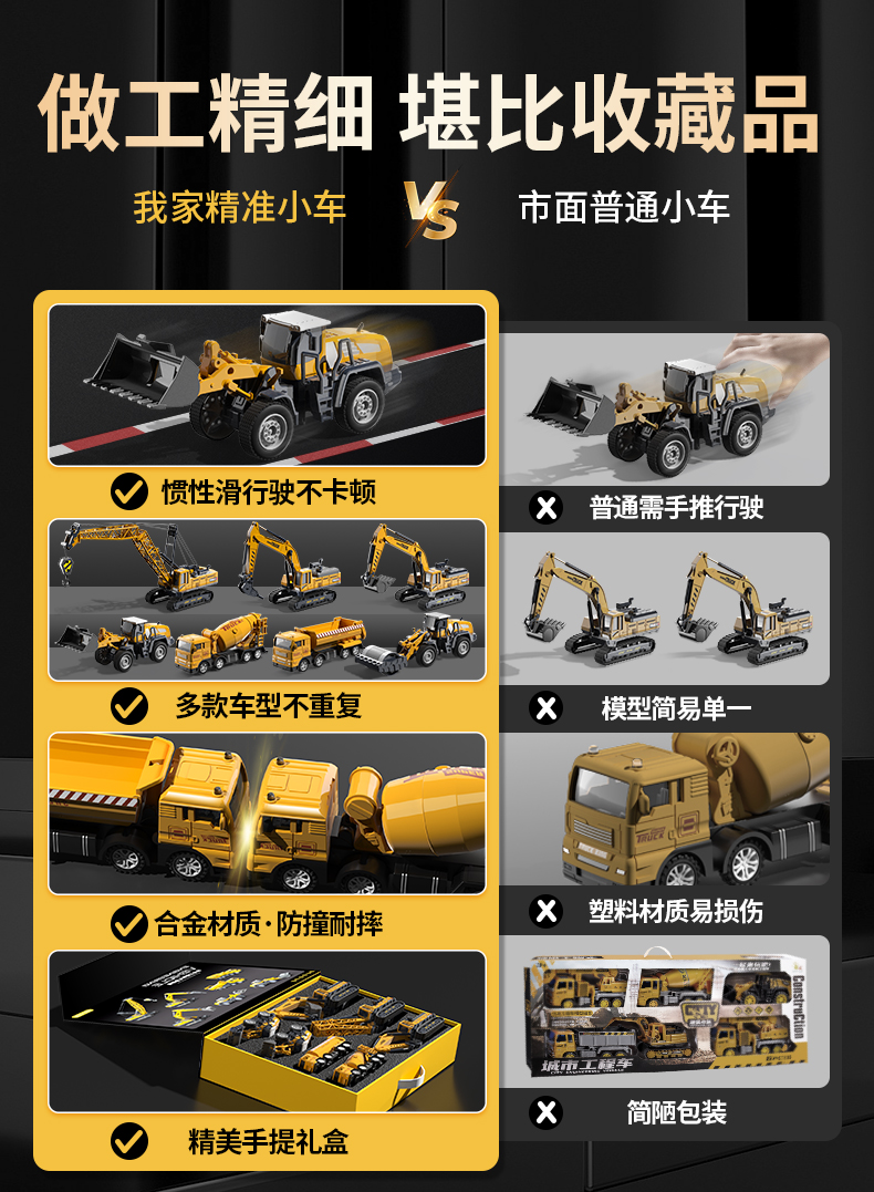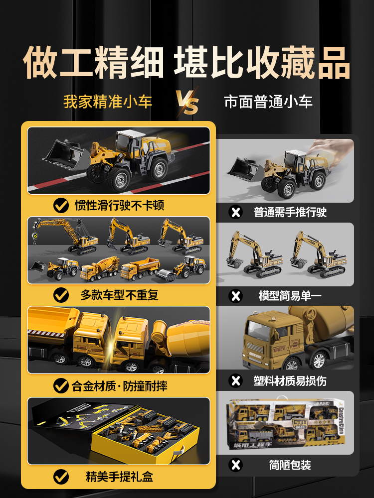 2025新款挖挖掘机工程车合金小汽车套装儿童玩具男孩生日礼物3岁6