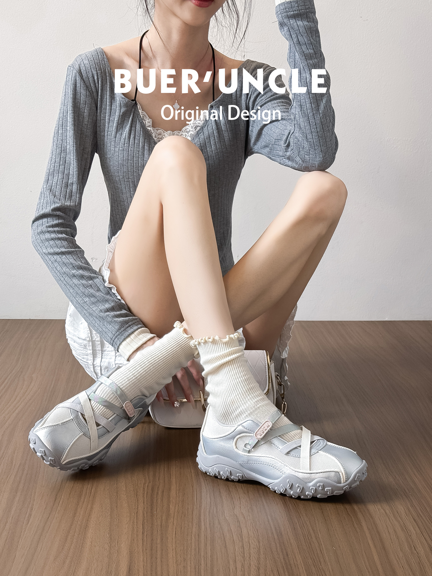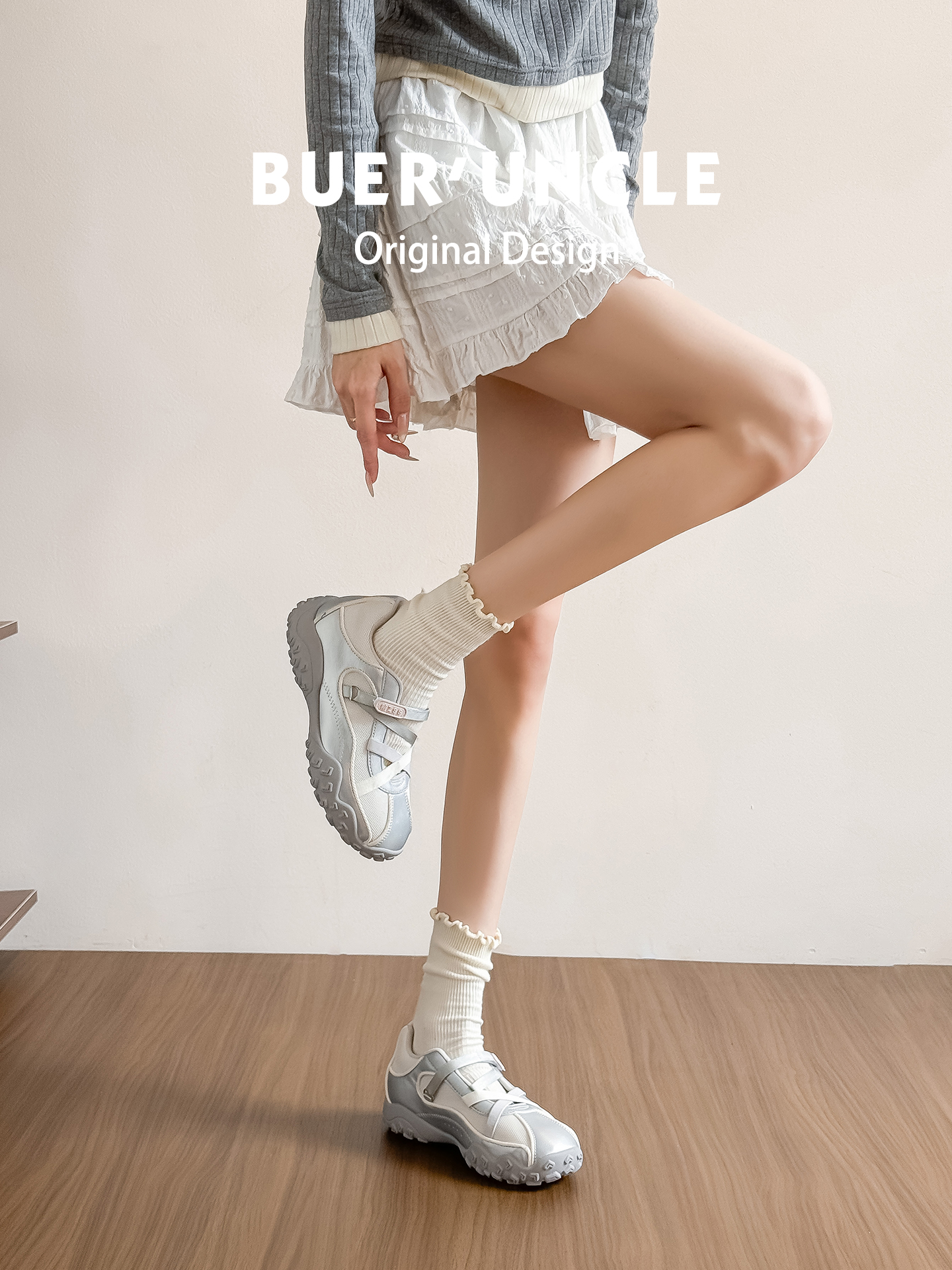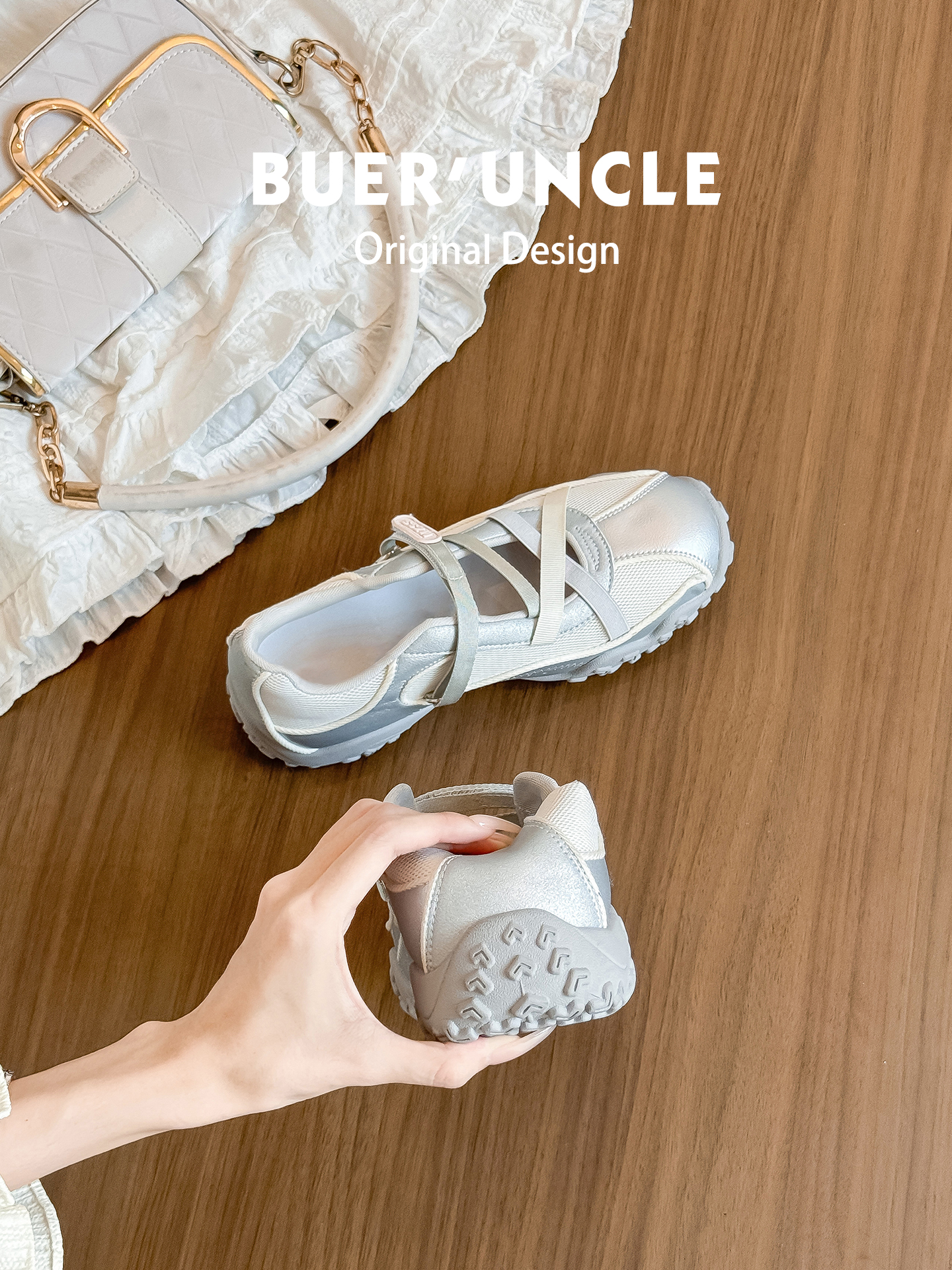 牛皮版!6cm内增高厚底芭蕾德训鞋女夏透气网面玛丽珍运动休闲鞋