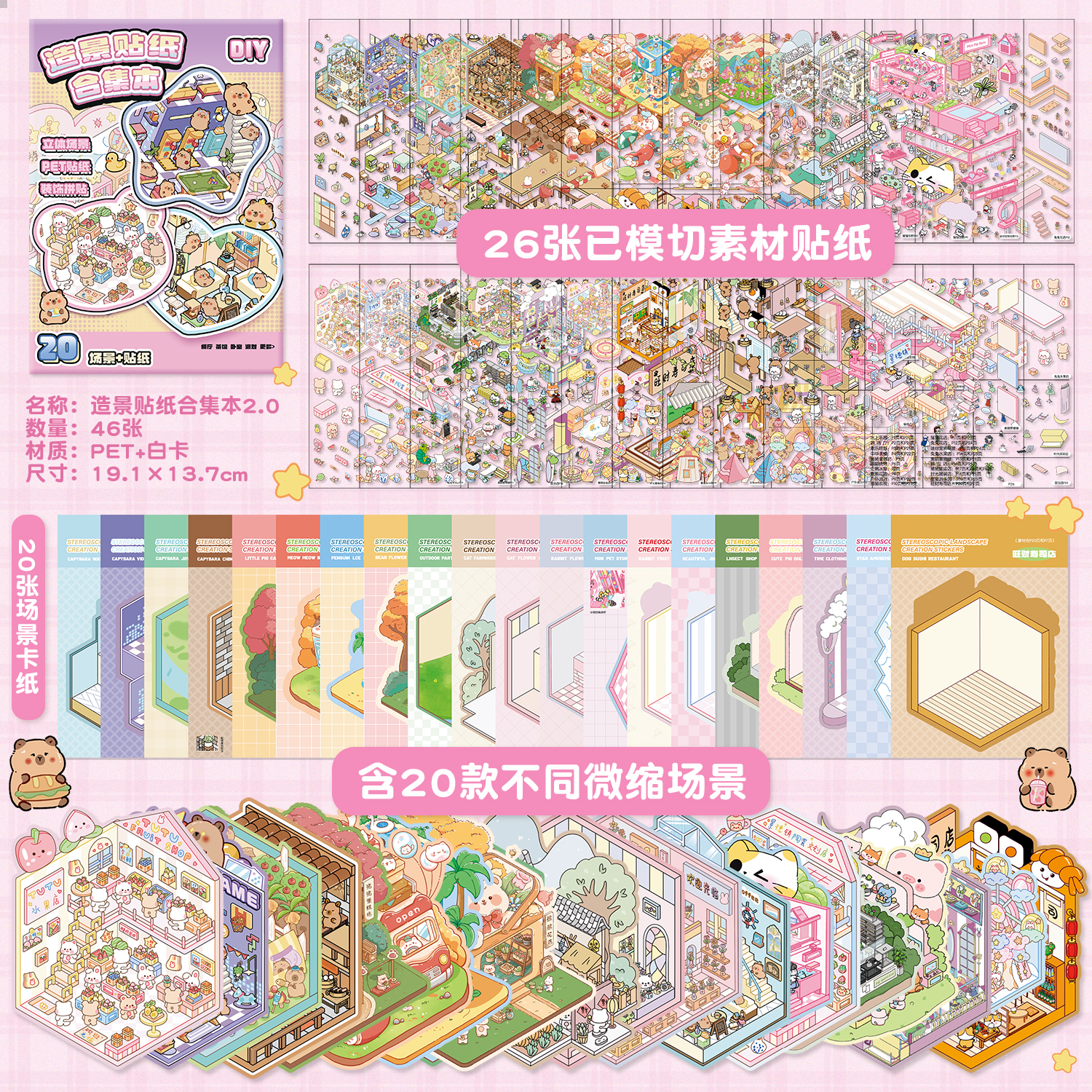 大尺寸!微缩场景合集本2.0新款造景贴纸高难度大号大版网红儿童玩具女孩打发时间2025爆款3d立体手工diy小屋