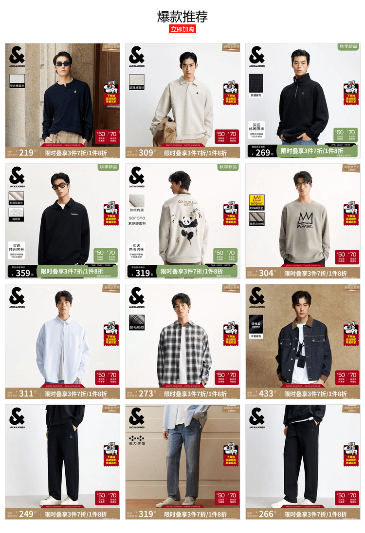 【重磅棉】杰克琼斯男装2025年秋季新款T恤宽松打底刺绣男士短袖