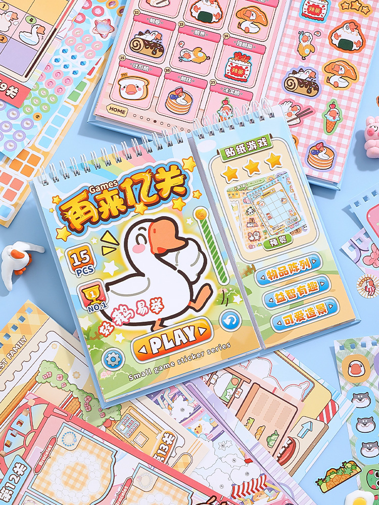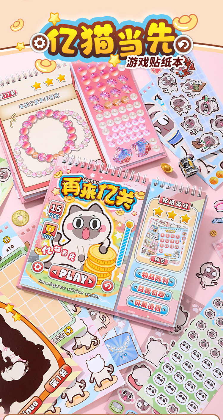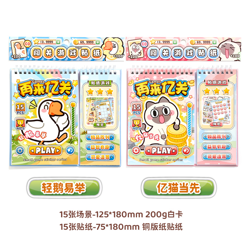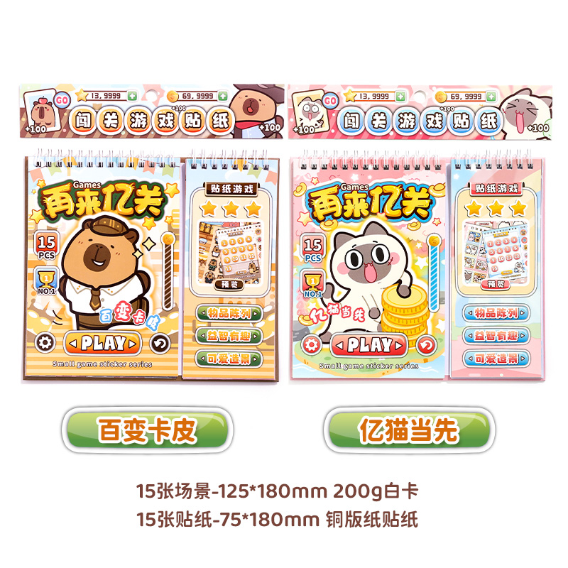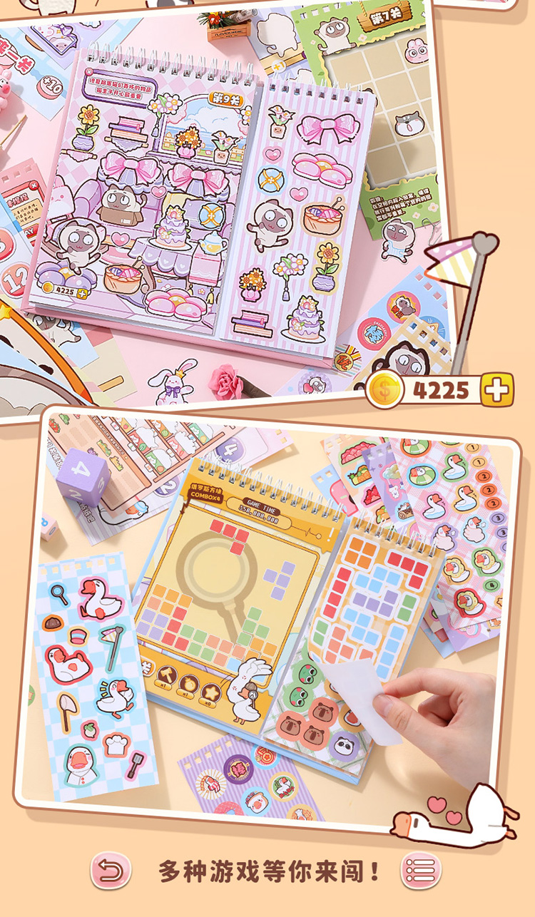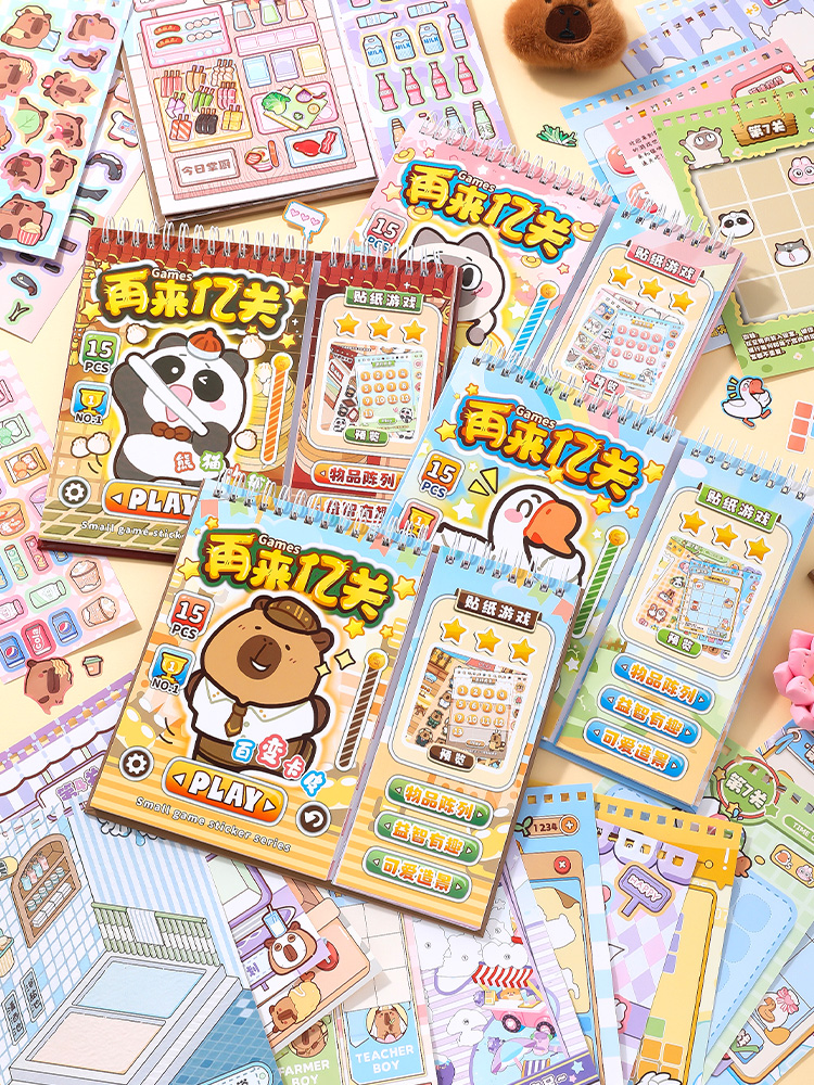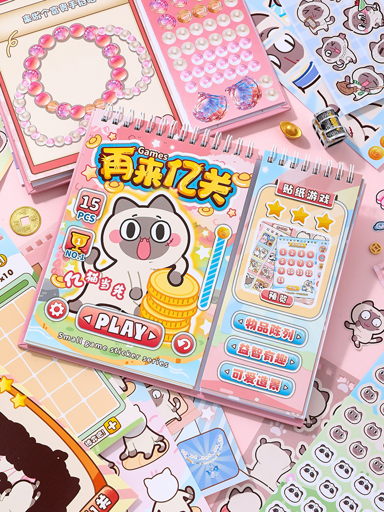 三年二班 闯关游戏贴纸本新款手工益智玩具造景贴纸女孩创意卡通DIY小鼻嘎贴贴画再来亿关拼图解压免裁剪