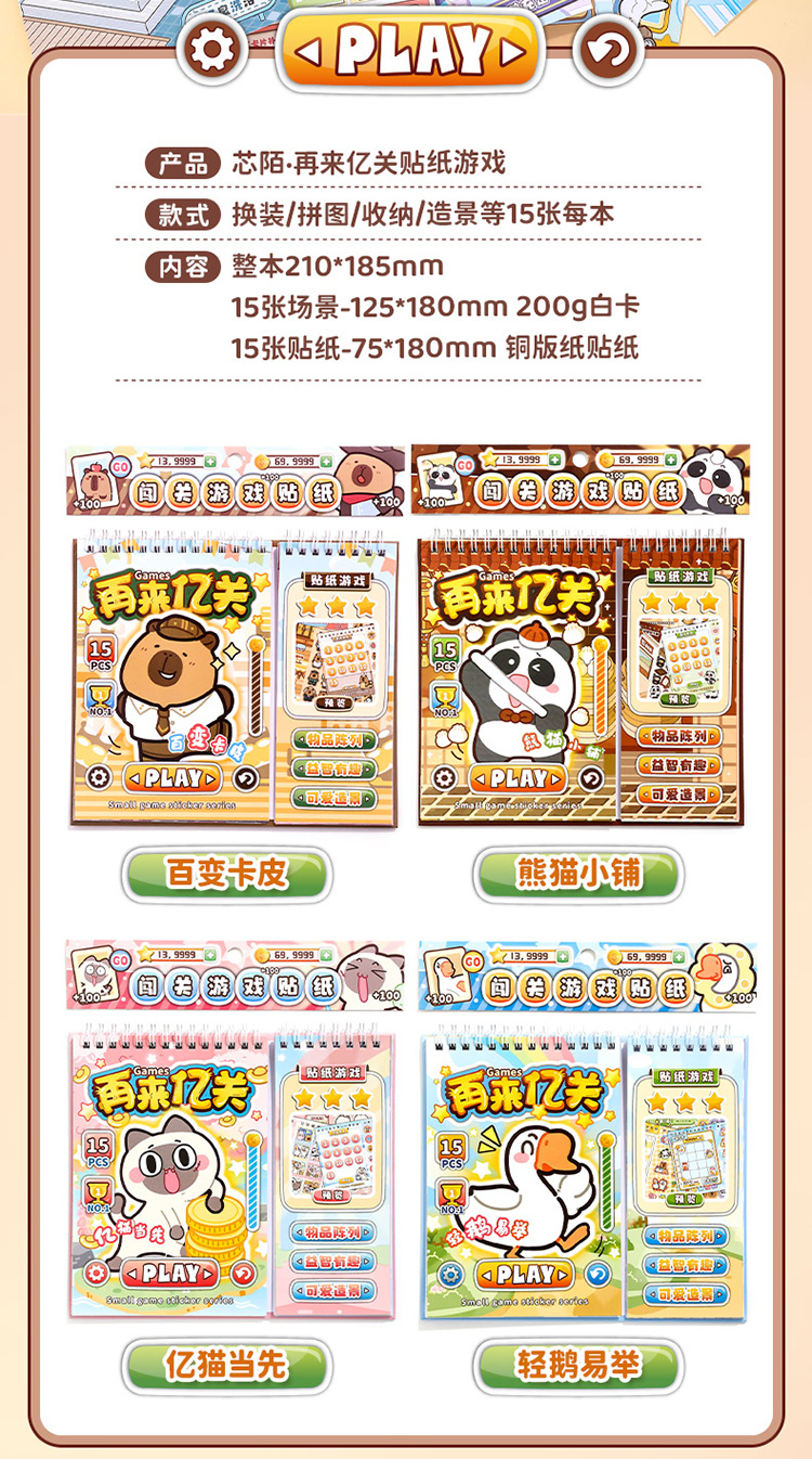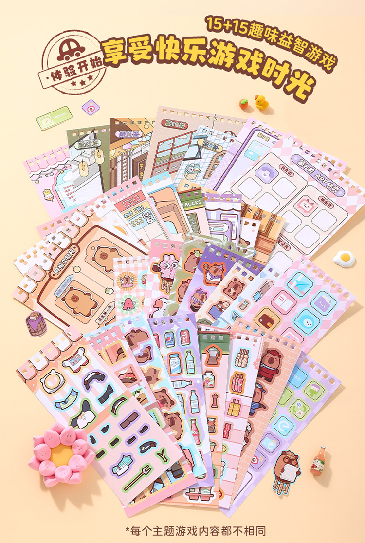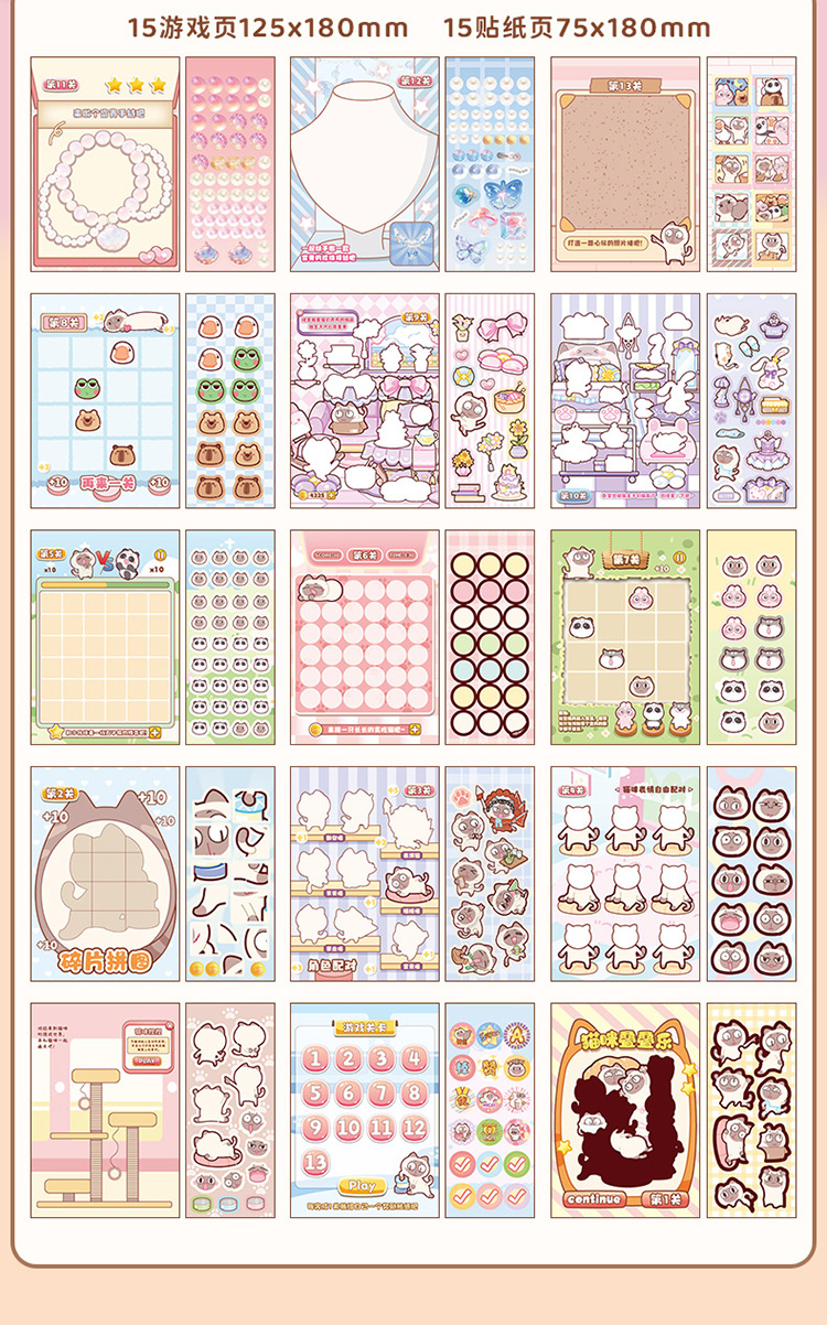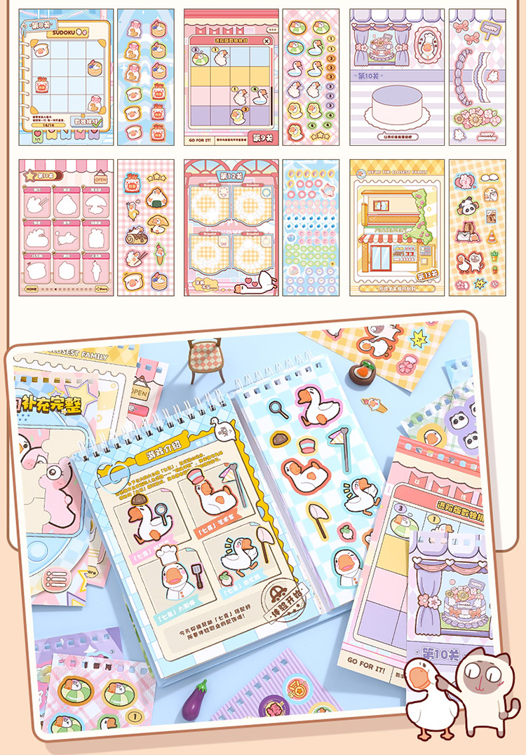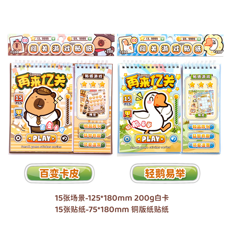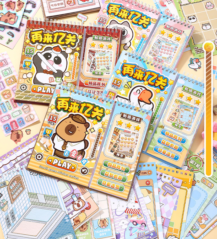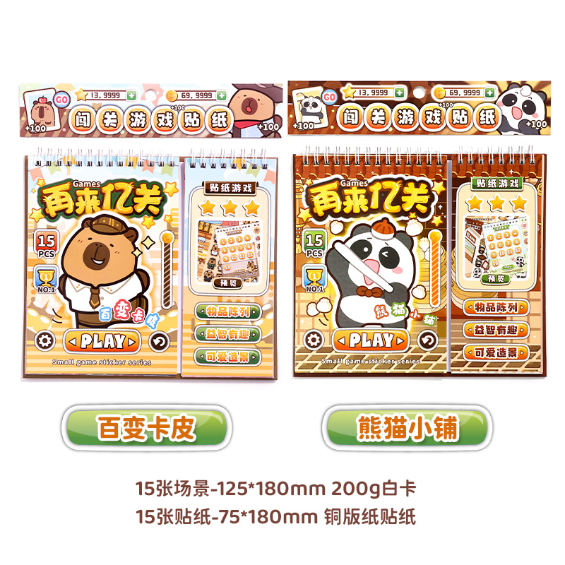三年二班 闯关游戏贴纸本新款手工益智玩具造景贴纸女孩创意卡通DIY小鼻嘎贴贴画再来亿关拼图解压免裁剪