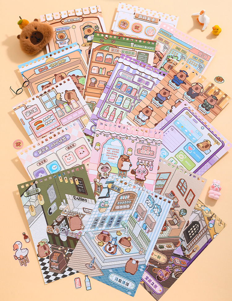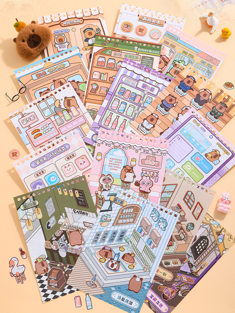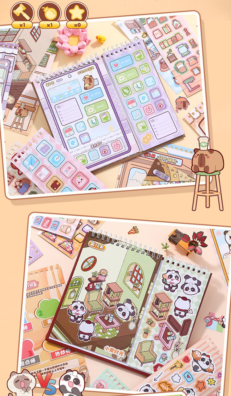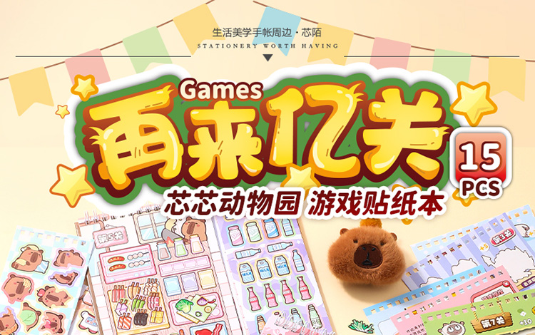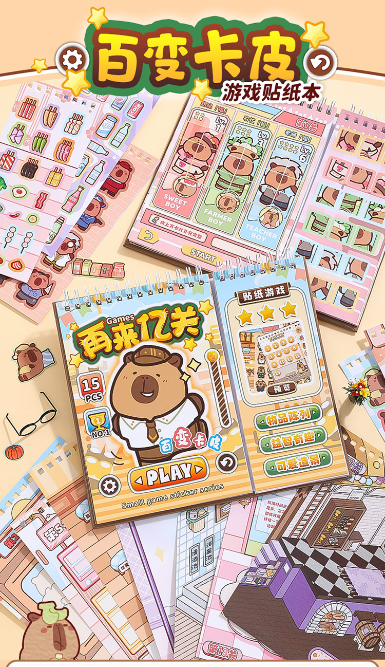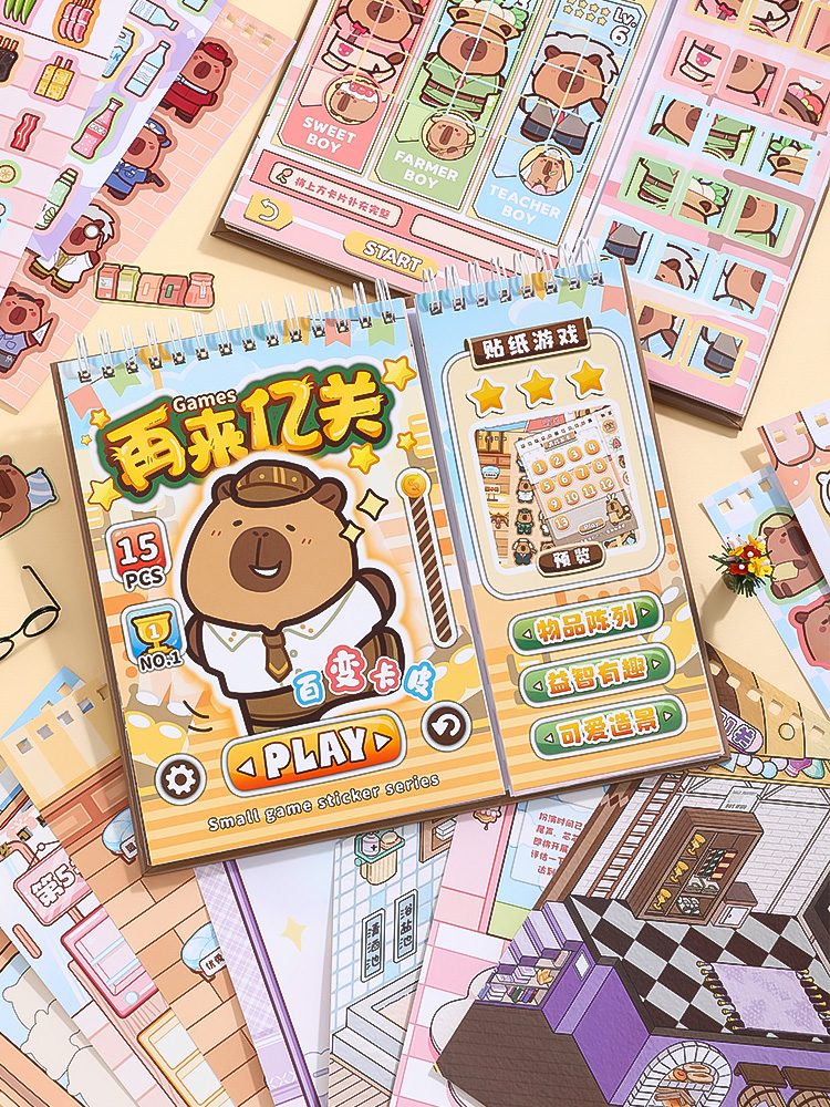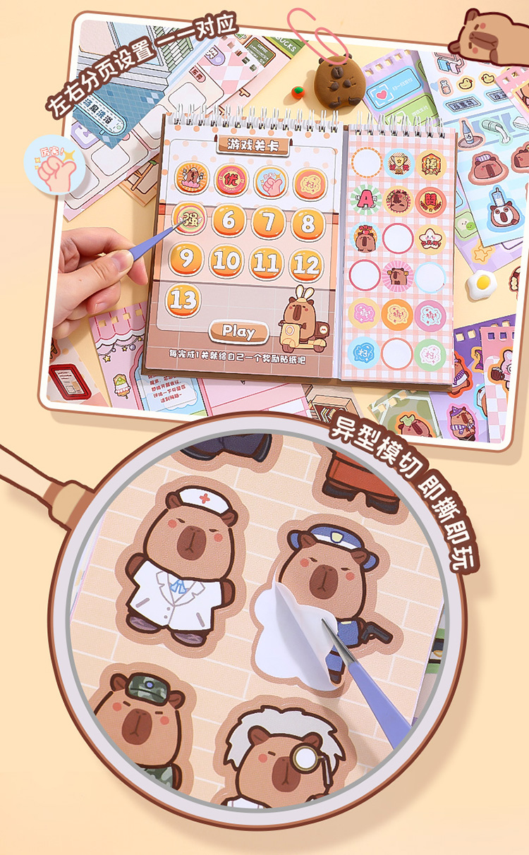 三年二班 闯关游戏贴纸本新款手工益智玩具造景贴纸女孩创意卡通DIY小鼻嘎贴贴画再来亿关拼图解压免裁剪