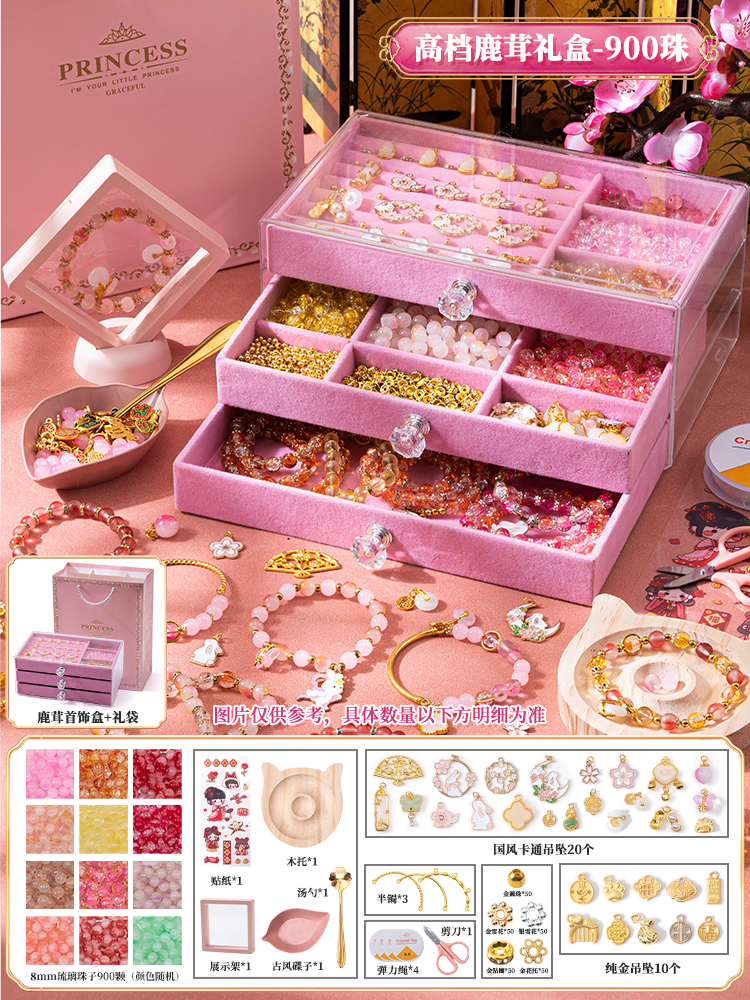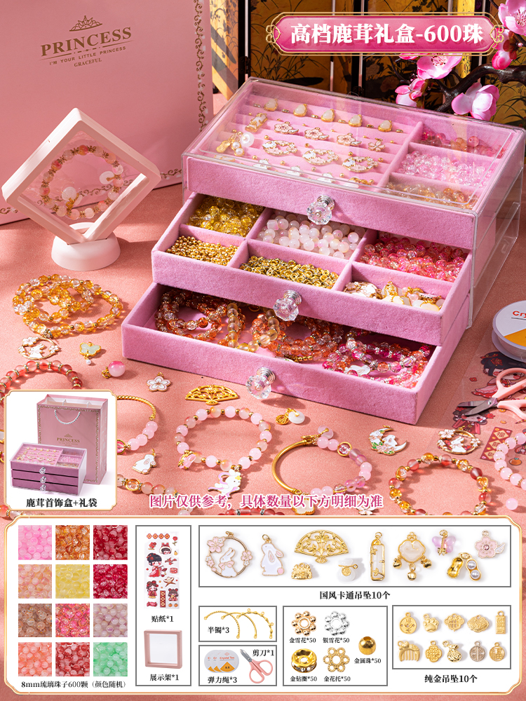 儿童手链串珠手工diy材料玩具女生古风礼盒穿珠子制作项链女孩子