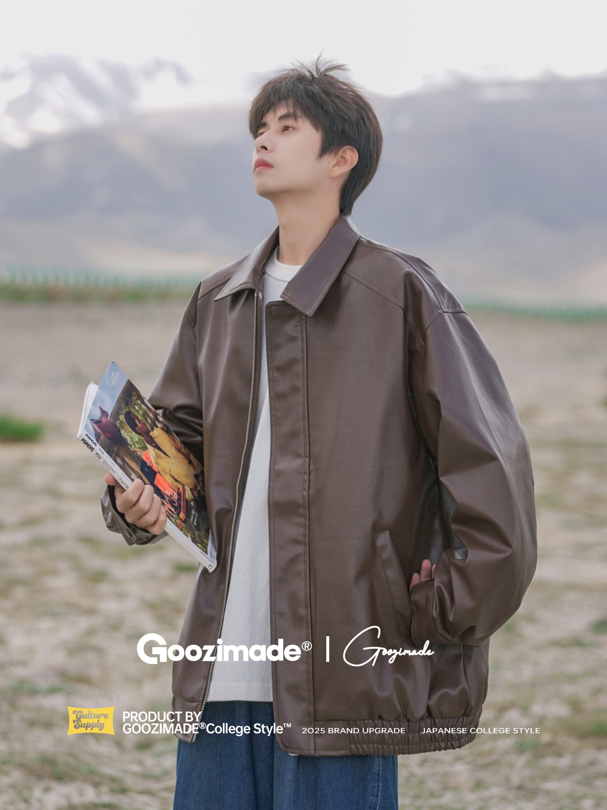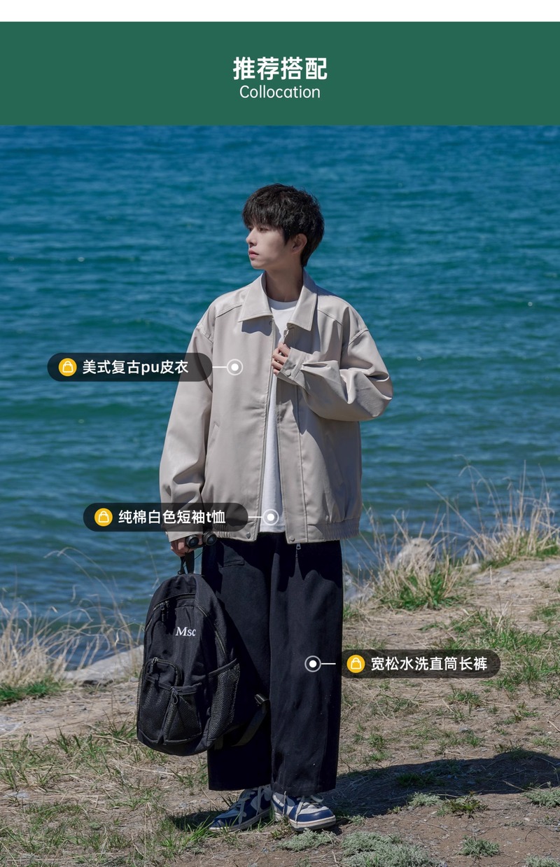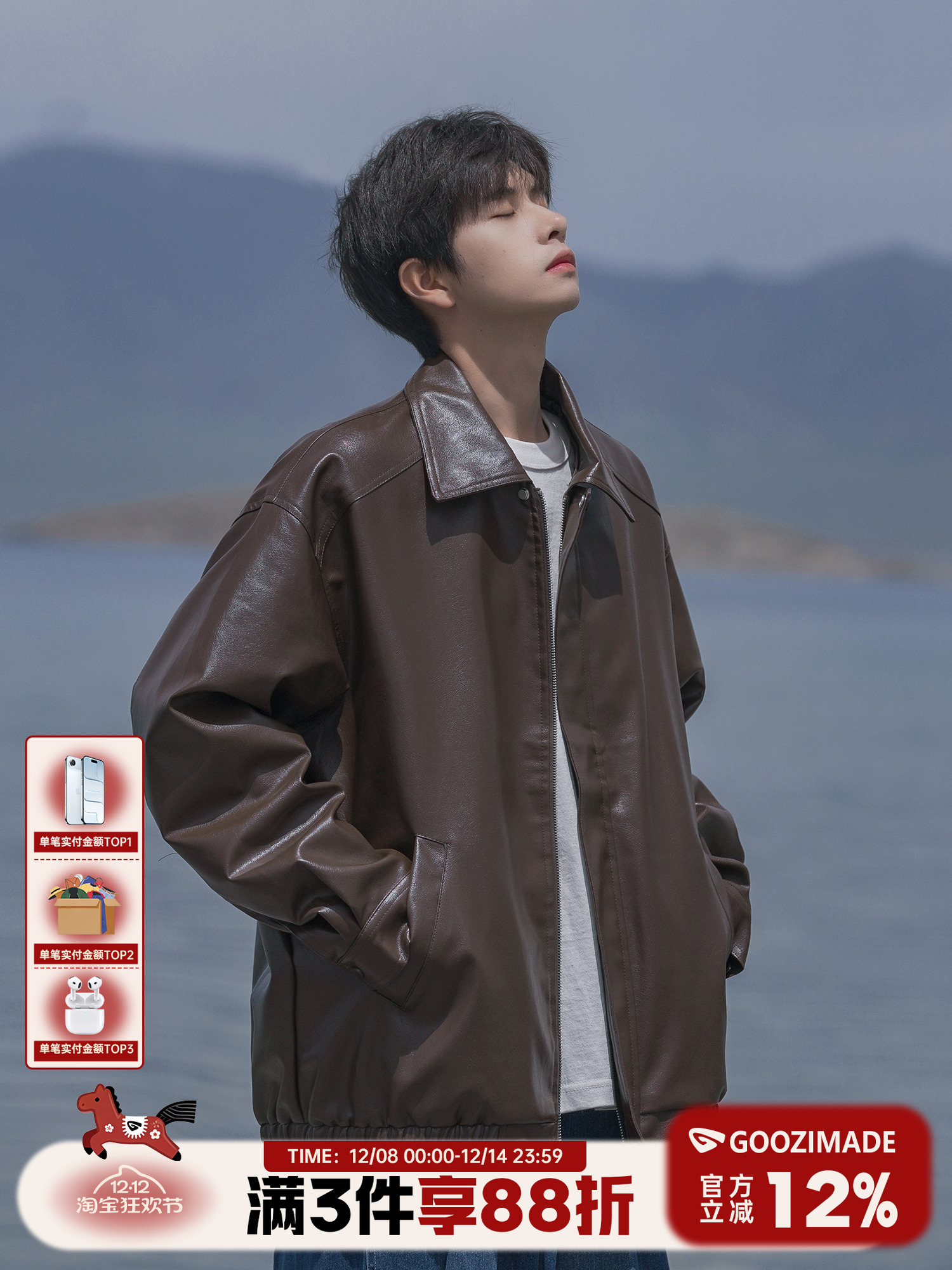 美式复古pu皮衣外套男冬季棕色男生休闲男装秋季男士皮夹克男款