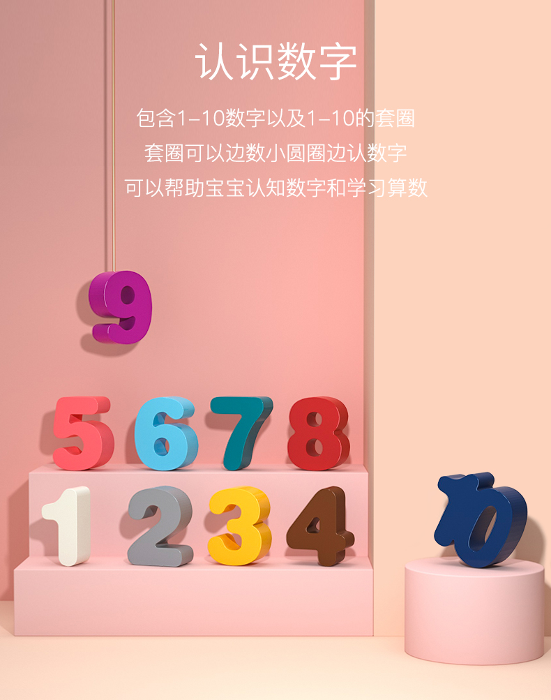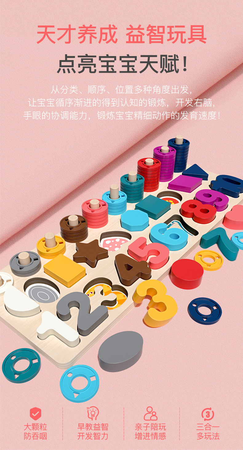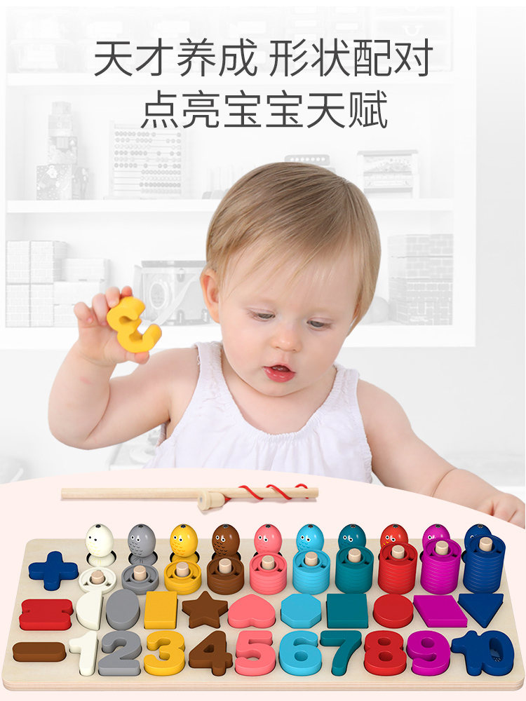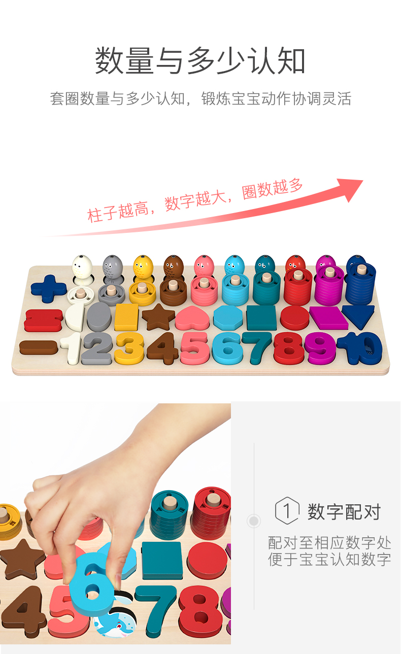 幼儿童玩具数字拼图积木早教益智拼装0蒙氏1一2岁半3男孩女孩宝宝